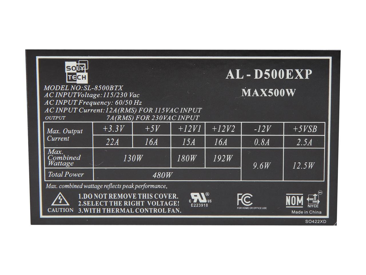 Solytech AL-D500EXP/SL-8500BTX 500W ATX12V Power Supply – OEM
